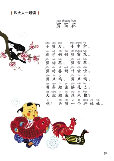 值得一提的是,“部編本”新教材增加了“和大人一起讀”欄目??傊骶帨厝迕艚淌谠f(shuō),“和大人一起讀”是新教材的亮點(diǎn)之一。大人指父母、老師或其他家庭成員與親友。一年級(jí)剛上學(xué)的學(xué)生自己還不會(huì)讀,所以讓大人和他們一起讀。