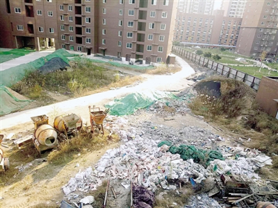 王女士介紹他們小區(qū)是清華·紫光園一期,與二期工地僅一墻之隔。8號(hào)樓從二樓起就能看到下面的工地,窗戶朝南原本是個(gè)好方向,冬天太陽(yáng)可以曬到屋里來(lái),還可以經(jīng)常開窗通風(fēng)。但因樓下工地垃圾成堆,樓上的住戶都不敢輕易開窗,經(jīng)常有各種惡臭飄進(jìn)房間。