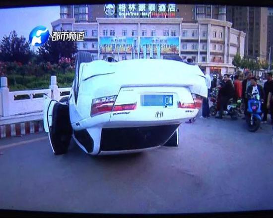 這是發(fā)生在4月26號,許昌襄城縣的一起事故。視頻中一輛白色轎車飛速撞向護(hù)欄后發(fā)生側(cè)翻。