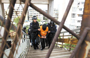殺死女友后,吳波被民警在洗浴中心抓獲資料圖片
