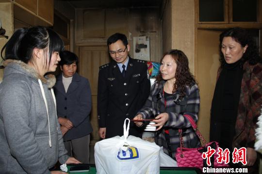 圖為浙江臺(tái)州椒江警方于28日到李某親屬家中探望正處于康復(fù)期的“帶毒”小嬰兒,并送上愛心捐款和奶粉等慰問品。