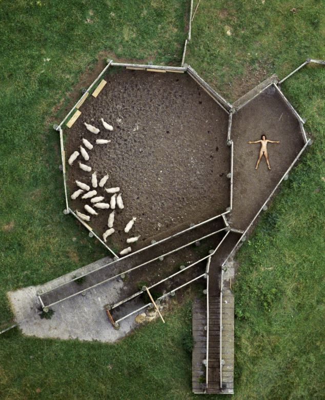 據(jù)悉,1984-1987年間,約翰利用直升機(jī)航拍了一組妻子的裸體照片。妻子在農(nóng)田、養(yǎng)豬場、機(jī)場跑道、海邊、鐵軌及移動(dòng)的汽車上一絲不掛,舒展著四肢。他說:“在那些地點(diǎn)拍攝裸體照片,可以反襯出人類在大千世界的渺小和微不足道?!?/p>