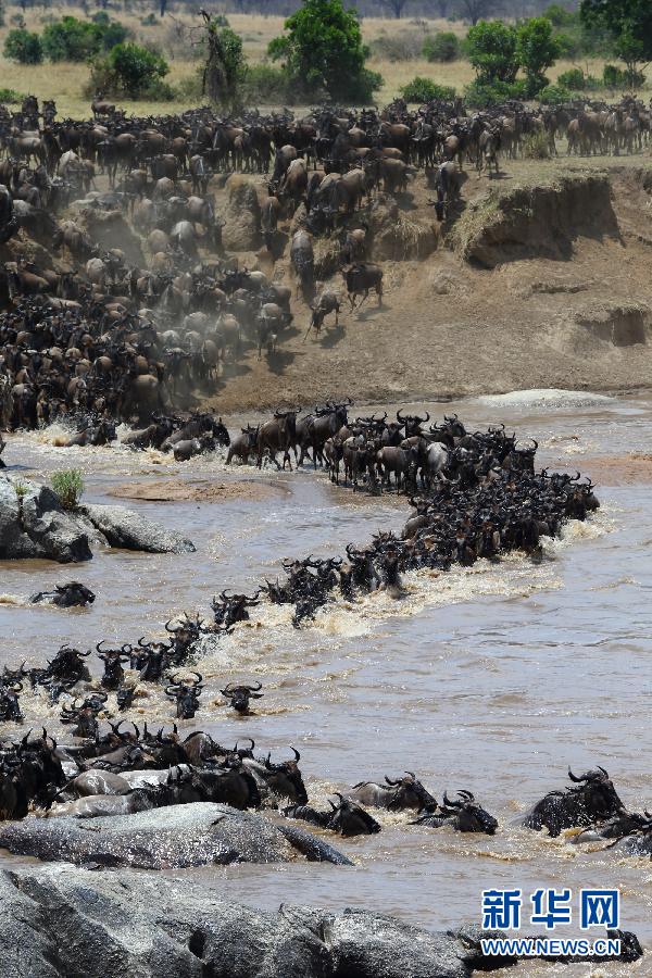 這是8月17日在坦桑尼亞塞倫蓋蒂國(guó)家公園內(nèi)拍攝的角馬遷徙隊(duì)伍。每年7月至9月是坦桑尼亞的旱季,為了追逐水源和青草,以角馬和斑馬為主的數(shù)以百萬(wàn)計(jì)的食草動(dòng)物從塞倫蓋蒂向肯尼亞馬賽馬拉遷徙。這場(chǎng)“地球上最壯觀的動(dòng)物大遷徙”全程超過(guò)1000公里,動(dòng)物在往返途中需兩次渡過(guò)鱷魚(yú)出沒(méi)、危機(jī)重重的馬拉河。新華社記者張平攝