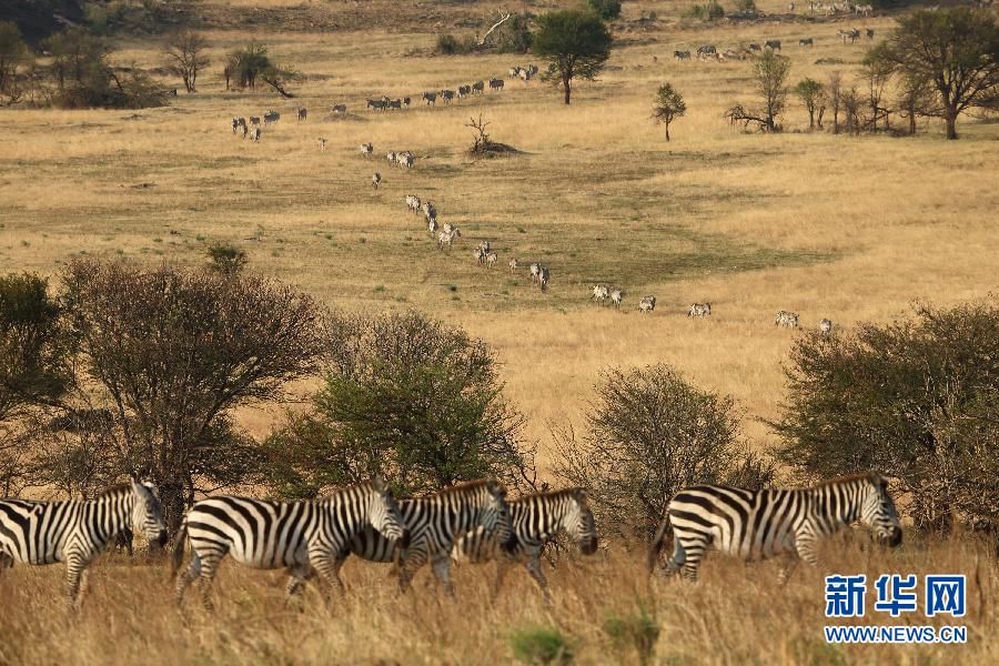 這是8月16日在坦桑尼亞塞倫蓋蒂國(guó)家公園內(nèi)拍攝的斑馬遷徙隊(duì)伍。每年7月至9月是坦桑尼亞的旱季,為了追逐水源和青草,以角馬和斑馬為主的數(shù)以百萬(wàn)計(jì)的食草動(dòng)物從塞倫蓋蒂向肯尼亞馬賽馬拉遷徙。這場(chǎng)“地球上最壯觀的動(dòng)物大遷徙”全程超過(guò)1000公里,動(dòng)物在往返途中需兩次渡過(guò)鱷魚(yú)出沒(méi)、危機(jī)重重的馬拉河。新華社記者張平攝