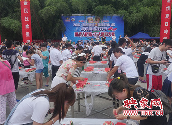 “挑戰(zhàn)吉尼斯 萬(wàn)人吃西瓜”是由欒川重渡溝風(fēng)景區(qū)和鄭州支點(diǎn)旅游品牌策劃有限公司聯(lián)合打造的2016“燕京啤酒”重渡溝第八屆音樂啤酒狂歡節(jié)狂歡不停歇第三期主題活動(dòng)。當(dāng)日重渡溝景區(qū)熱鬧非凡,擺滿誘人西瓜的小方桌次第擺開,翠綠的皮、鮮紅的瓤、瓜香四溢。游客們熱情參與,現(xiàn)場(chǎng)妙趣橫生。有“推土機(jī)”式掃蕩吃法,有“生猛”地大口吞咽,有小朋友萌態(tài)啃瓜表情十足......真是吃得爽快,玩得暢快,贏得痛快。比賽分為“狼吞虎咽”男子組、“大快朵頤”女子組,每組冠軍將獲得3000元現(xiàn)金大獎(jiǎng)。經(jīng)過(guò)淘汰賽、決賽層層激烈角逐,最終比賽決出男女子組一、二、三等獎(jiǎng)各一名,所有參賽選手都乘興而來(lái),滿載而歸!“來(lái)重渡溝吃西瓜感覺特別甜,特別痛快!從來(lái)沒有跟這么多人一起吃西瓜,一口氣連吃三塊還不過(guò)癮!”一位游客笑著對(duì)記者說(shuō)。