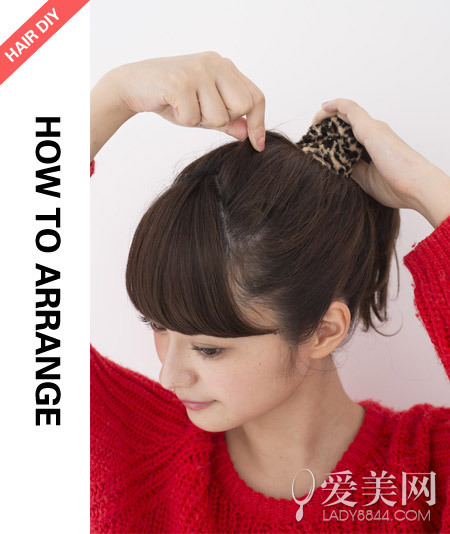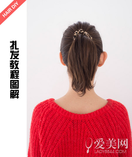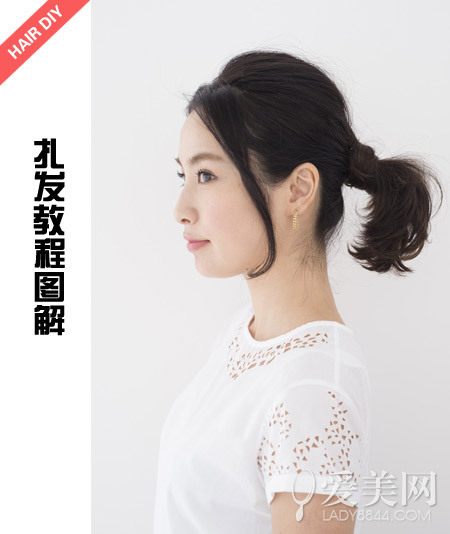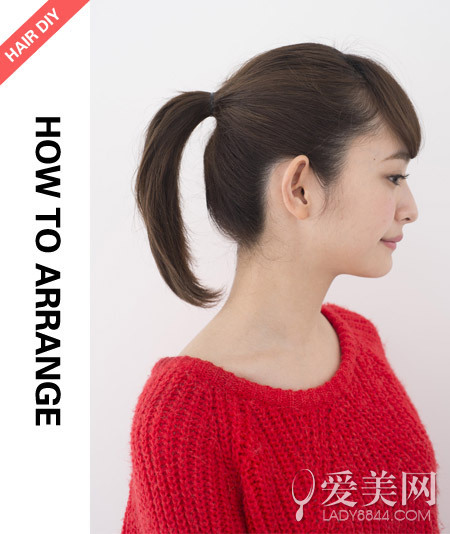 step2:留出頭頂?shù)念^發(fā)將腦后的頭發(fā)綁成馬尾。