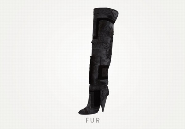 幾何拼貼皮毛過(guò)膝皮靴