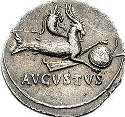 奧克塔維安.凱撒聽完大為欣喜,他希望讓所有人都看到自己那張星盤,于是他將這幅星盤刻成石板置于城市中心以讓所有人都能讀到。后來,在奧克塔維安獲得關(guān)鍵戰(zhàn)役腓力比和亞克興角戰(zhàn)役的勝利后,他成為了古羅馬的皇帝,并將自己的名字改為“奧古斯都.凱撒(63BCE-14CE)”。他統(tǒng)治了羅馬 41年,在他統(tǒng)治下的和平與繁榮則持續(xù)了200年,被成為“Pax Romana(羅馬帝國統(tǒng)治下的和平)”。為了紀念自己成為帝王的命運,他鑄了一個圓形銀幣,上面刻有他的上升星座摩羯的標志。