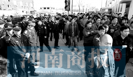 4月5日下午3時(shí)20分許,鄭州市長(zhǎng)江路與工人路交叉口東、西、北三個(gè)方向的路口處,站著近百人,將此處堵得嚴(yán)嚴(yán)實(shí)實(shí),過(guò)往車輛只能繞行。