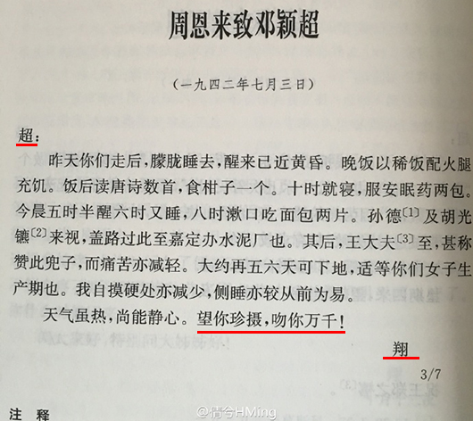 最近,新浪博主@倩兮HMing 送上了這把跨越數(shù)十年的,來(lái)自中央的高級(jí)狗糧:1942至1955年,9封周恩來(lái)與鄧穎超的往來(lái)書(shū)信。據(jù)觀察者網(wǎng)查詢,這些書(shū)信都出自《周恩來(lái)鄧穎超通信選集》,這本選集由中共中央文獻(xiàn)研究室編撰,1998年2月出版,全書(shū)約10萬(wàn)字。