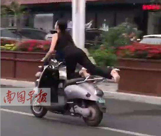 4月24日,有網(wǎng)友在微博上發(fā)布一段視頻:一女車手騎電驢的方式有些奇葩,車輛行駛過程中,女子突然往后伸出大長腿,擺出“飛行”姿勢一路前行?!薄 ∵€有網(wǎng)友調(diào)侃說,“沒想到你是這樣深藏不露的大長腿”,認(rèn)為該女子的駕車行為頗為奇葩。
