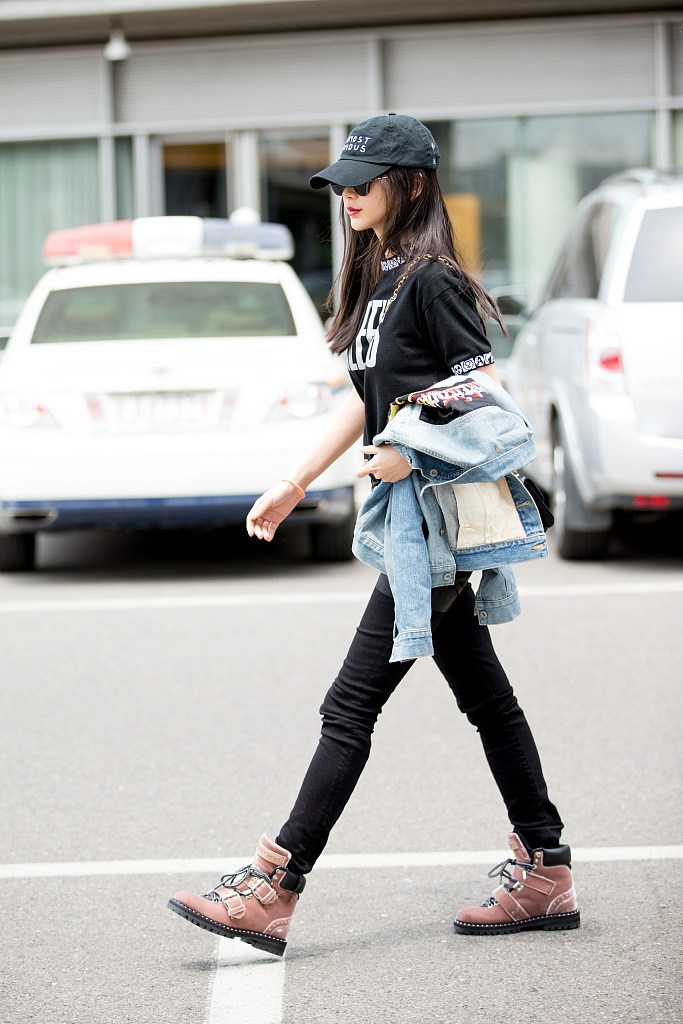 Baby全黑出街"微笑唇"點睛 雙腿細長直