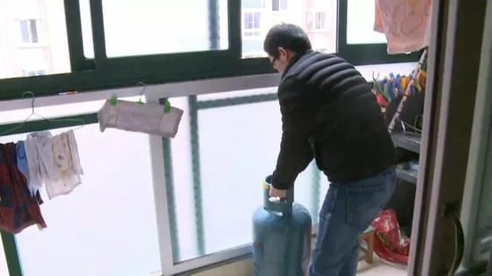為安全起見(jiàn),工作人員隨即將煤氣罐搬到了陽(yáng)臺(tái)上。
