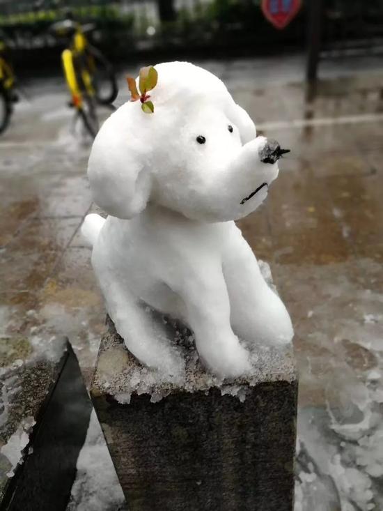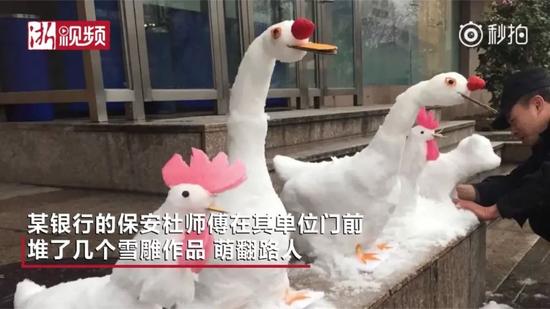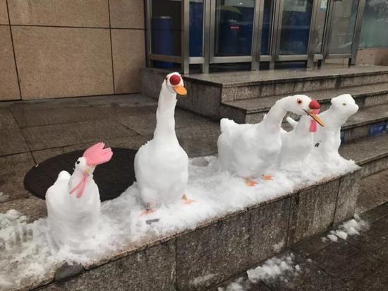 保安下雪后堆了個"動物園" 萌得心都化了