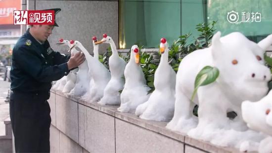 原標題:下雪后,這位保安堆了個動物園!萌得心肝兒都化了…