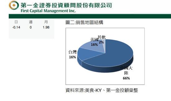 數(shù)據(jù)顯示這家來自臺灣省的餐飲企業(yè)對大陸市場很是依賴,其母公司“美食-KY”2017年第三季度的營收中有66%是來自大陸地區(qū)的562家店鋪,而臺灣地區(qū)的營收占比則僅為16%。