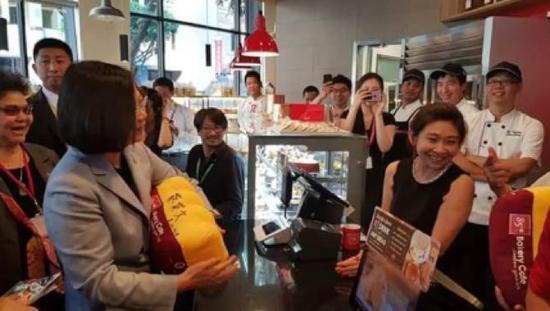 然而,令這家在大陸賺錢賺得“美滋滋”的臺灣企業(yè)意外的是,公司在美國洛杉磯的一家店鋪,卻成了在美國洛杉磯“過境”和給臺獨“造勢”的蔡英文專門“造訪”的一站。而且根據(jù)臺灣媒體的報道,這蔡英文還把“85度C”視為“臺灣之光”。
