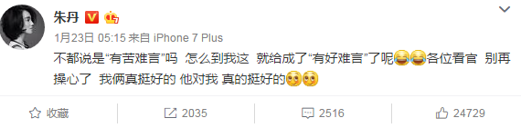 這要是兩位單身,或許還好一點(diǎn),關(guān)鍵是這可是兩個(gè)為人父母的,說出這么高山流水覓知音的話,確實(shí)不合適。不但如此,周一圍的夫人,朱丹在微博里一直為老公賣力宣傳。