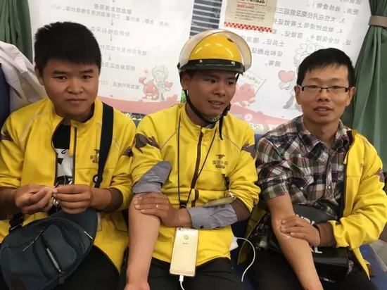 在附近的外賣小哥聽到有獻血活動,送完外賣后立刻趕來,獻完血后又繼續(xù)工作去了。