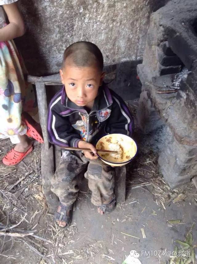 去的時(shí)候正趕上他們吃午飯,這位小朋友吃的是米飯,跟家人吃的不一樣。這碗米飯是鄰居送過來的,因?yàn)榧依锔F,幾乎沒有錢去買米,能吃上米飯對(duì)他們來說是件很奢侈的事情!