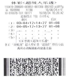 許昌超級大樂透第16099期36萬大獎