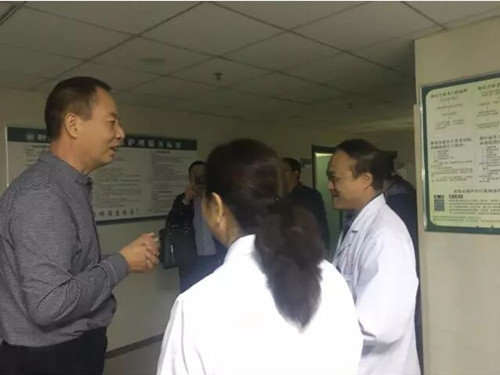 孫和平主任和新鄭中醫(yī)院的領(lǐng)導(dǎo)溝通曉夢媽媽的病情并對醫(yī)護人員表示感謝
