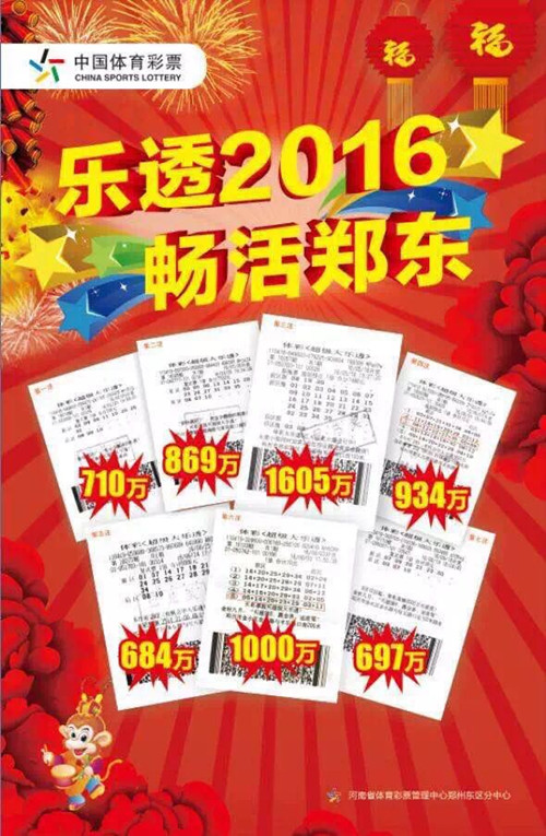 進入2016年以來,超級大樂透玩法500萬元、千萬元大獎頻頻花落綠城,讓鄭州市廣大彩民朋友充分感受到了中國體育彩票的魅力!據(jù)統(tǒng)計,截止9月中旬,鄭州東區(qū)分中心所轄體育彩票銷售網(wǎng)點已經(jīng)中出500萬元以上大樂透游戲大獎7個,最高中獎金額高達(dá)1605萬元。