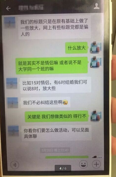面對(duì)記者對(duì)“一個(gè)班15對(duì)情侶”提出的諸多疑問,對(duì)方直接回答,“媒體報(bào)道說有,就一定是這么回事。”“我們不必再糾結(jié)這些。”他后來承認(rèn)有些標(biāo)題在原有的基礎(chǔ)上做了一些放大,“比如15對(duì)情侶,有6對(duì)結(jié)婚我們可以說8對(duì),放大些?!?/font>