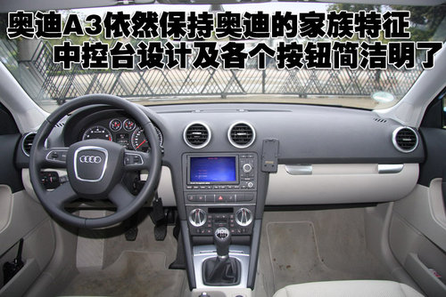 奧迪A3依然保持奧迪的家族特征,中控臺(tái)設(shè)計(jì)及各個(gè)按鈕簡潔明了。其四輻式真皮方向盤配備集成控制按鈕,而白色冷光儀表盤突出視覺效果的同時(shí),又方便駕駛員讀取信息。