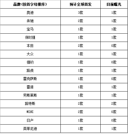 此前的2012北京國際車展新聞發(fā)布會上,主辦方就已正式宣布,此次展會將會有89款全球首發(fā)車型(量產(chǎn)車)現(xiàn)身,其中跨國公司的全球首發(fā)車型達到了14款之多。隨著車展前最后一周的到來,這些重磅車型也逐步浮出水面,目前我們能夠確認的跨國公司全球首發(fā)車型有11款,當然我們不能排除這些曝光或即將曝光的車型會出現(xiàn)跳票的情況,但無論如何,我們不妨提前預(yù)習(xí)一下這些代表未來的車展主角: