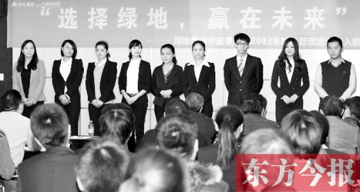 綠地集團(tuán)中原事業(yè)部行政人事部經(jīng)理許詠琪說,招募管培生是集團(tuán)人才發(fā)展戰(zhàn)略的重要組成部分,因此對(duì)人才選拔要求的嚴(yán)格程度,超乎尋常。