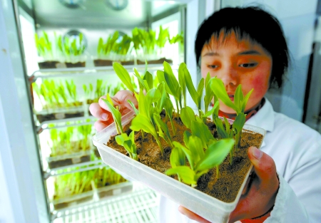 3月27日,??h種子站工作人員在查看光照培養(yǎng)箱里培養(yǎng)的種苗。近年來,浚縣實(shí)施“科技興糧”戰(zhàn)略,糧食生產(chǎn)連年獲得豐收。目前,??h100多萬畝小麥長勢(shì)良好。 新華社發(fā)