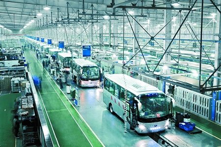 4月19日,現(xiàn)代化的宇通客車生產(chǎn)線正快速運轉。今年一季度,鄭州宇通客車股份有限公司共銷售各類客車10168輛,成為行業(yè)內(nèi)唯一超過萬輛的企業(yè)。其中,共出口各類客車1531輛,出口額達到了10.12億元,出口量和出口額均名列行業(yè)第一。 河南日報記者 王 錚 攝