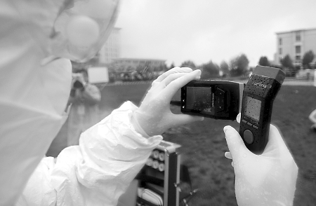 演練活動(dòng)上使用了新型檢測(cè)設(shè)備。 河南日?qǐng)?bào)記者 史長(zhǎng)來(lái) 攝