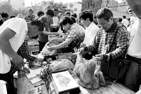 在現(xiàn)場,管城區(qū)商務局的工作人員忙個不停。該局工會主席李國占說,不到6點半,就有很多市民提著籃子來買菜,7點鐘開始賣菜時,已經有200多人在排隊。