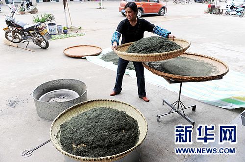 4月10日,信陽(yáng)市浉河區(qū)董家河鎮(zhèn)的農(nóng)戶(hù)在晾曬烘烤茶葉。