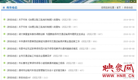 映象網(wǎng)漯河訊(記者 常衛(wèi)東)近日,有網(wǎng)友向記者反映,在瀏覽漯河交通運(yùn)輸局網(wǎng)站看相關(guān)政策時(shí),發(fā)現(xiàn)網(wǎng)站里的幾個(gè)欄目都是很久的信息,有的是空白。