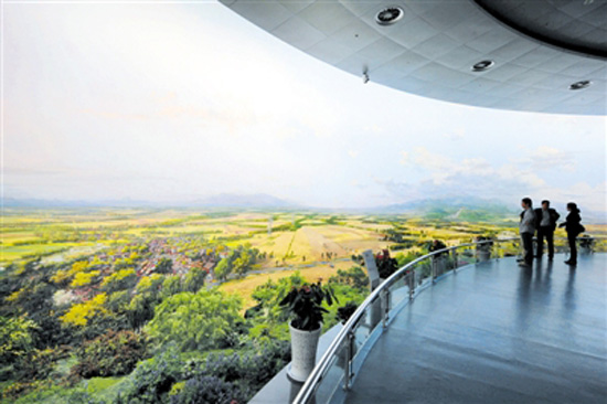 3、四層《錦繡中原》全景圖,給你全方位展示全省十八個省轄市的山川原野、城鄉(xiāng)風(fēng)光、名勝古跡、人文景觀,在這幅宏偉畫卷里,讓你領(lǐng)略什么是歌天頌地、富于創(chuàng)新、震撼人心,中原大地有著怎樣的遠古、現(xiàn)代和未來。