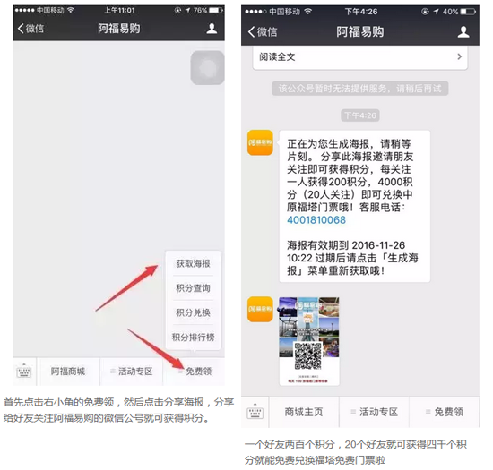 11月21日——11月25日和11月28日——12月2日十天時間里,每天免費送票100張,怎么領(lǐng)取?先搜索并關(guān)注“阿福易購”微信公號,剩下的您可看好了。