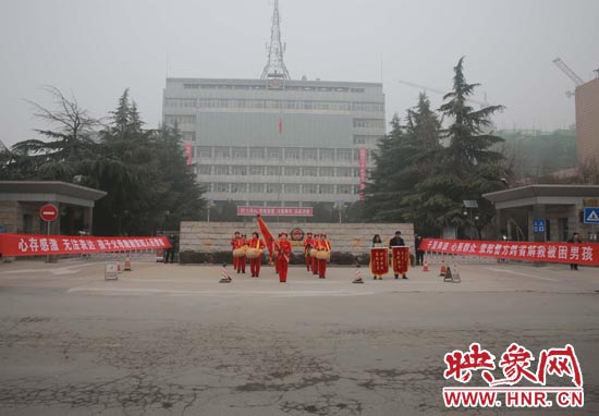 為了表達對滎陽警方的感激之情,20日上午8時許,盧女士就和家屬一起來到滎陽市公安局大門口,敲鑼打鼓地舉著兩面錦旗表示感謝。映象網(wǎng)記者看到,在公安局大門兩側,有兩個紅色條幅格外顯眼,“千里奔波,心系群眾,滎陽警方跨省解救被困男孩”,“心存感激,無法表達,孩子父母跪謝滎陽人民警察”。