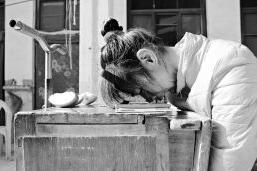 父親托村里的木匠為郭向鴿打造了一架特殊的“小車”——全身木質(zhì)結(jié)構(gòu),主體是一個(gè)木頭椅子,座位上有一個(gè)能打開的洞,便于郭向鴿上廁所;兩側(cè)安裝了擋板,防止她跌落;面前是一張小桌板,桌板上有一個(gè)固定飯碗的卡槽;下面還有一個(gè)小抽屜。“小車”下方有4個(gè)輪子,椅子靠背和桌板一側(cè)各有一個(gè)把手,是用來移動(dòng)“小車”的。輪子只能直來直去,需要拐彎時(shí),只能費(fèi)力地抬起扶手,把小車整個(gè)扭轉(zhuǎn)個(gè)方向,再推著繼續(xù)前進(jìn)?!靶≤嚒钡闹谱麟m然粗糙,每一個(gè)細(xì)節(jié)卻十分人性化。從小到大,這樣的小車郭向鴿已經(jīng)坐壞了好幾輛。隨著郭向鴿的成長(zhǎng)和護(hù)理經(jīng)驗(yàn)的積累,父親不斷改進(jìn)“小車”,最終形成了現(xiàn)在的模樣。每天早晨,郭向鴿醒來后,母親就艱難地將她從床上扶到小車上,晚上睡覺時(shí)再扶到床上。郭向鴿的吃喝拉撒都在小車上完成,這樣的日子已經(jīng)過了25年。有時(shí)候,當(dāng)冬天的陽光灑進(jìn)庭院,母親就會(huì)推郭向鴿出來曬曬太陽。但是,如果要推她出院門,郭向鴿是說什么都不會(huì)同意的。