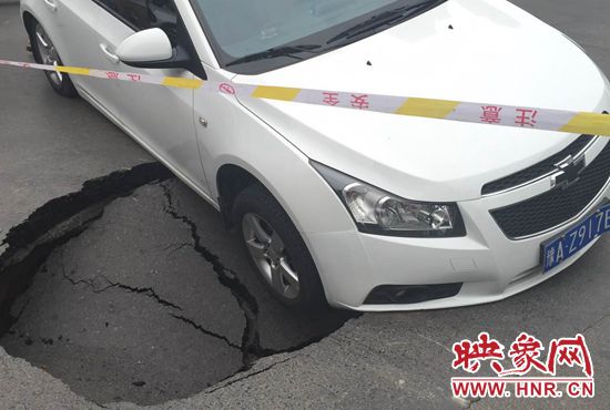 映象網(wǎng)訊(記者 駱瓊 王寬 文/圖)鄭州一條路又塌了,一個(gè)私家車被“坑”在了十字路口。8月17日中午12時(shí)15分,市民王女士開車行至經(jīng)二路緯四路交叉路口時(shí),突然地面下陷,車輛右前輪懸空,目前無法行駛。