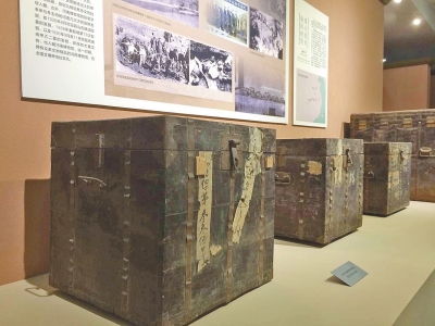據(jù)了解,臺北·歷史博物館與河南省素有淵源,十幾年前,河南博物院就與歷史博物館建立了姐妹關系,開創(chuàng)了兩岸博物館締結(jié)姐妹關系的先河??谷諔?zhàn)爭爆發(fā) 后,民國河南省政府為保存文物,輾轉(zhuǎn)將當時河南博物館的精品由河南運至漢口、重慶,其中38箱、共5000余件組文物最終運到中國臺灣。這批文物后被撥交 臺北·歷史博物館,成為該館館藏重要基礎。昨日展覽現(xiàn)場記者注意到,4只飽經(jīng)滄桑的木箱也被擺在展廳入口處的展臺上,外表還留有編號和封條,頗為引人注 意,它們正是那批河南文物1937年南遷時所用的包裝箱。