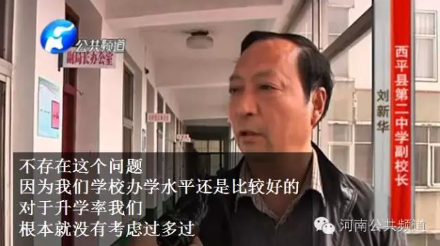 為了升學率、為了利益,不惜出賣學生嗎?為了證實家長的說法,記者又回到了西平縣二中,可是卻被學校保安拒之門外,隨后記者撥打了西平二中副校長劉新華的電話。
