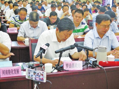 在昨天的約談會(huì)上,羅山縣委書記許遠(yuǎn)福顯得異常醒目,他是此次約談會(huì)中,唯一一名作為約談代表發(fā)言的地方政府負(fù)責(zé)人,并進(jìn)行表態(tài)性發(fā)言。