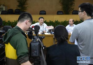 5月18日,杭州市環(huán)保局長胡偉(左)在發(fā)布會上回答記者提問。