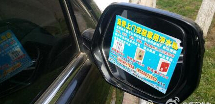 據(jù)鄭州市民劉先生報料,昨天下午兩點多,在鄭州市建業(yè)路建業(yè)花園小區(qū),開車的時候發(fā)現(xiàn)愛車的后視鏡被貼上了不干膠的小廣告.“尼瑪!害得我在寒風中半個小時還沒有清干凈……”你還見過、遇到過哪些奇葩的、令人想罵人的小廣告呢?