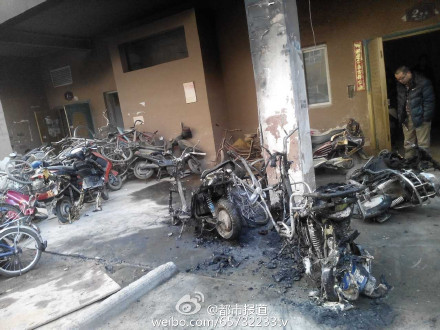 又是火災(zāi)!又是小電電!又是飛線充電!今天早晨6點(diǎn)多,鄭州豐慶路與博頌路口的富邦銘邸小區(qū),十幾輛電動(dòng)車著火受損,4輛被燒得面目全非。業(yè)主說,著火的這個(gè)拐角,昨晚有多輛電動(dòng)車同時(shí)飛線充電,能不著火嗎!物業(yè)呀,趕緊建充電車棚吧!