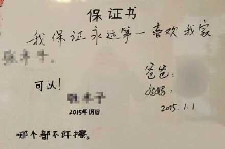 7、夫妻為生二胎向女兒寫保證書:永遠(yuǎn)第一喜歡你
