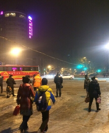 雪停了,但是路上的雪被車碾軋之后比較光滑。@大河寒江雪 :南陽路快速公交站,等了半小時沒見一輛公交。@清qing茶:桐柏路農(nóng)業(yè)路交叉口已經(jīng)有兩輛公交車因路滑橫到馬路上了。總之,出門不管是開車還是騎車還是步行都要千萬小心!遲到不要緊,安全才第一!
